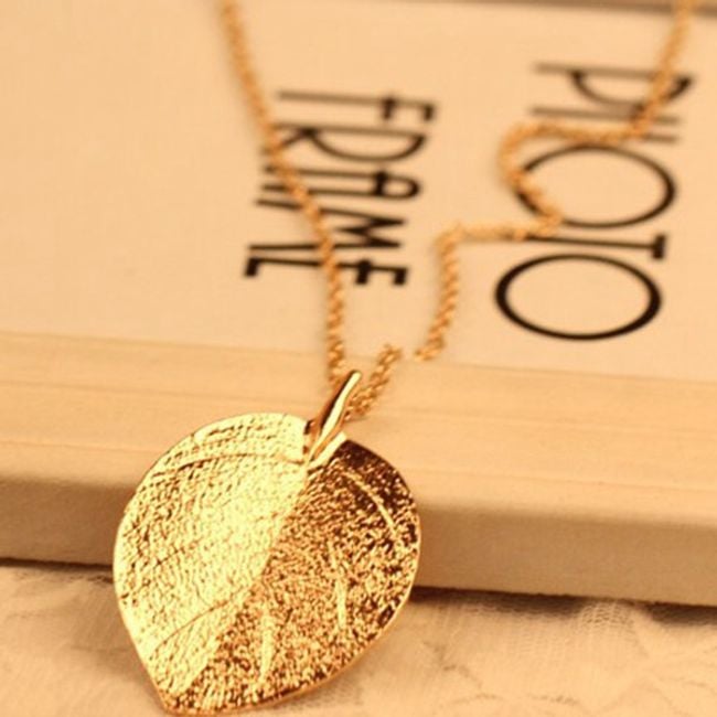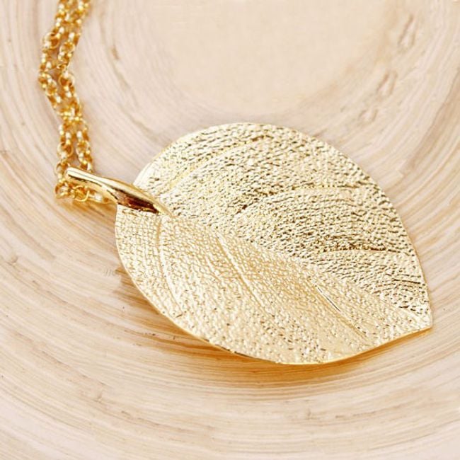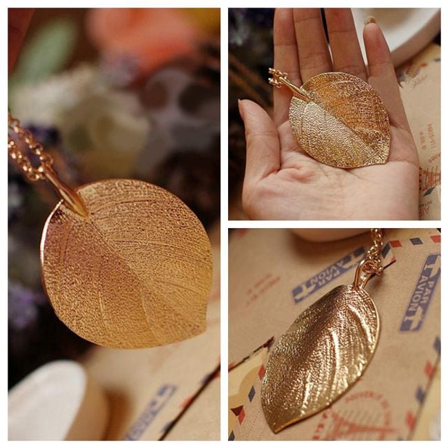 Espandi la tua collezione di gioielli con questa collana con ciondolo a forma di foglia. La collana è lunga e si abbina meglio a uno stile di abbigliamento semplice.