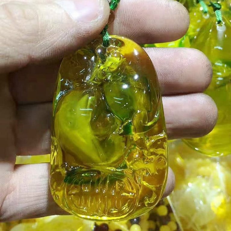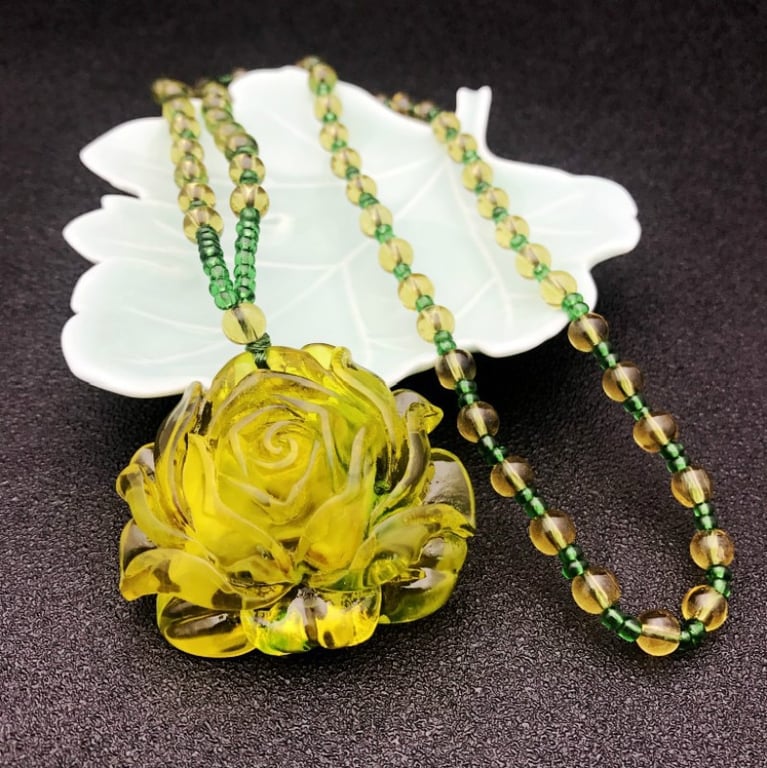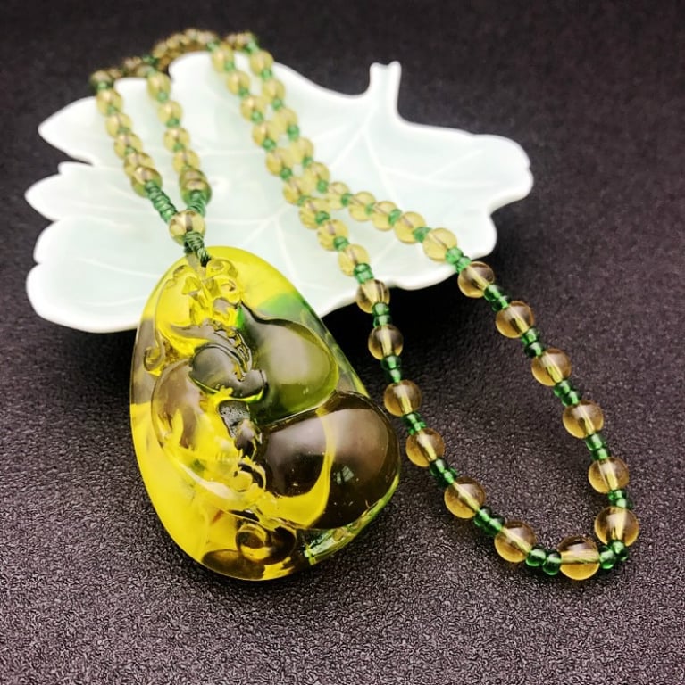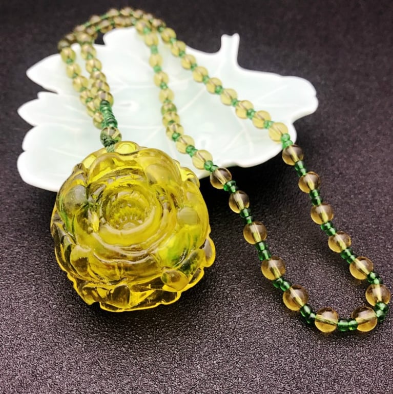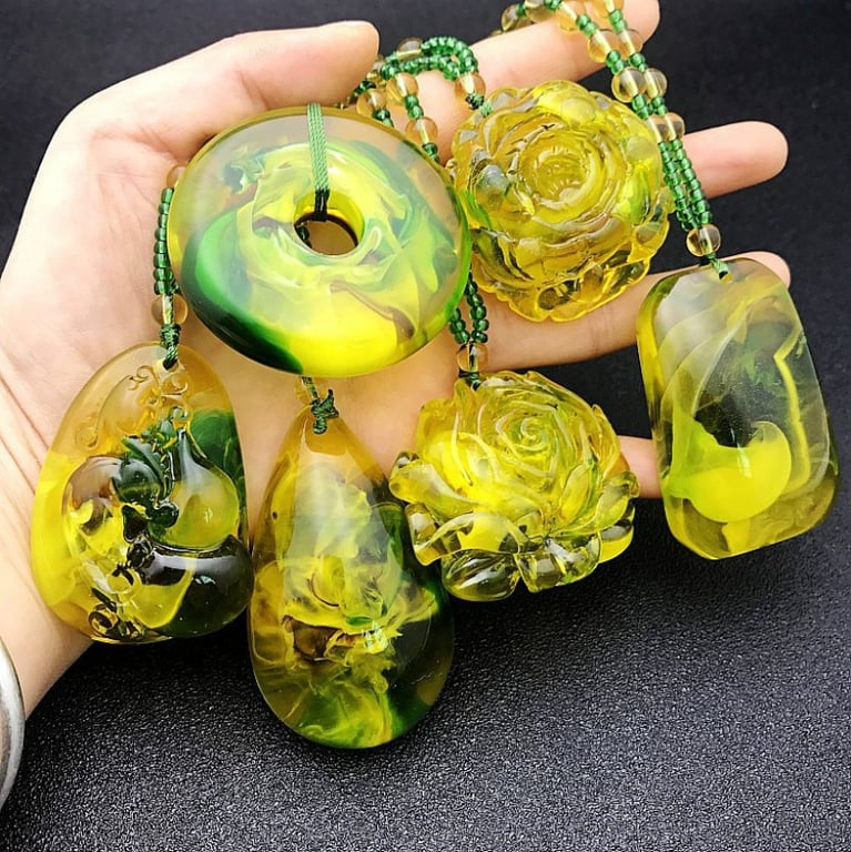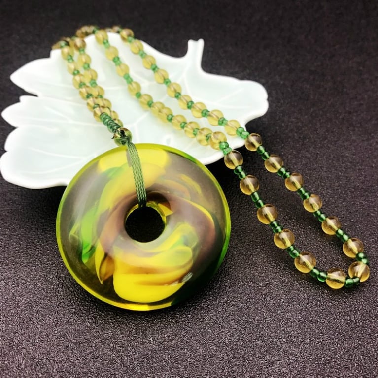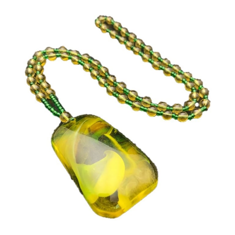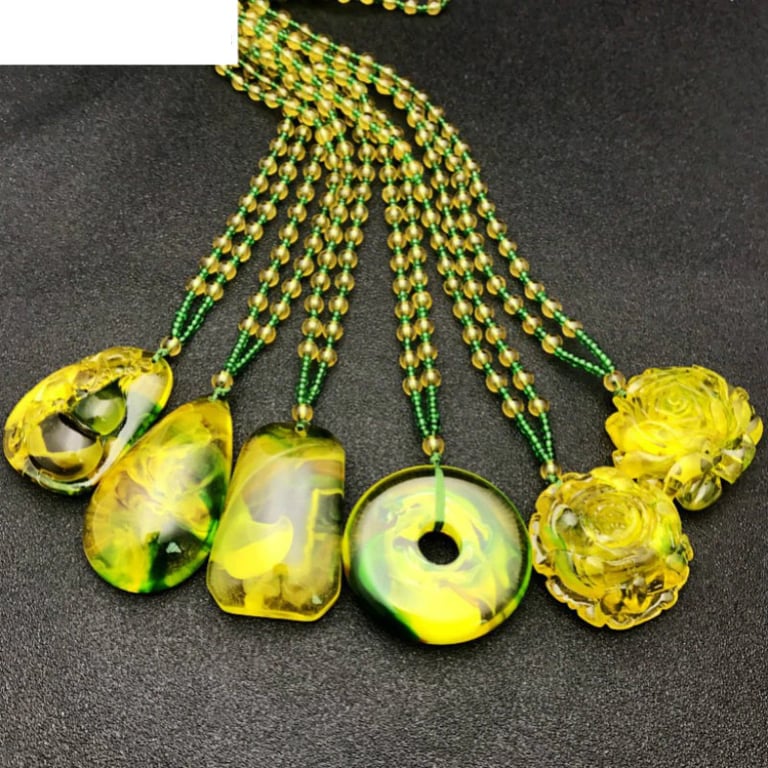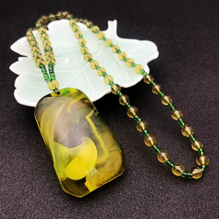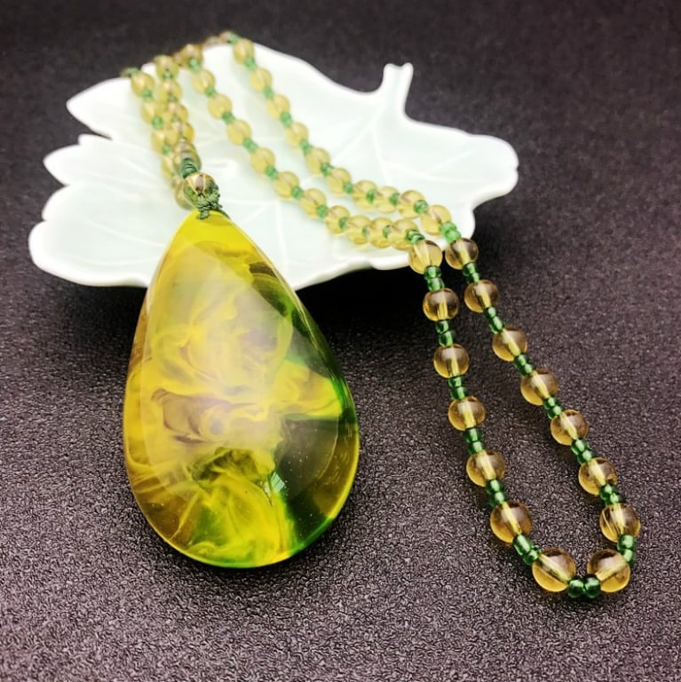Collana di lusso da donna con pendente in resina giallo-verde