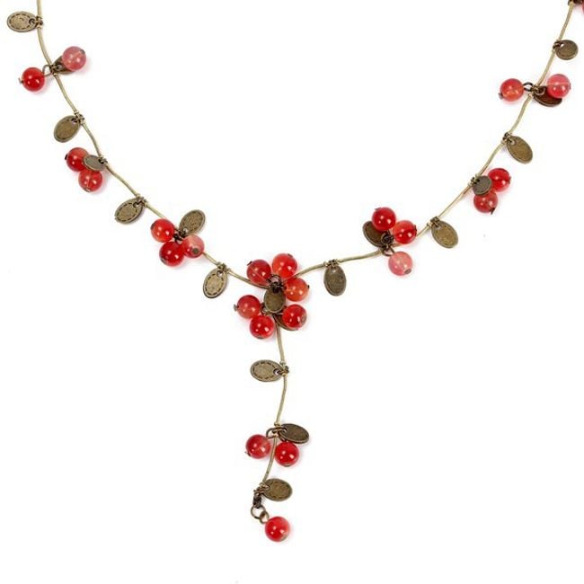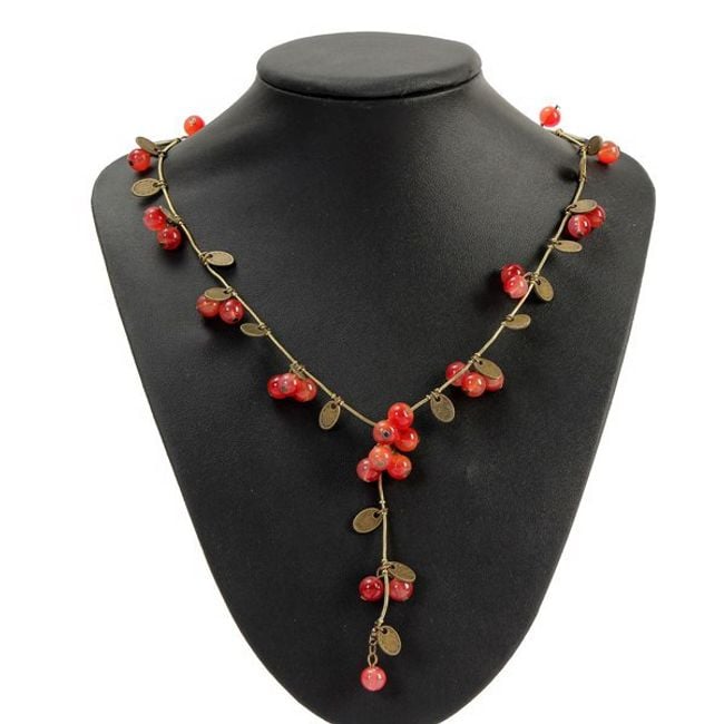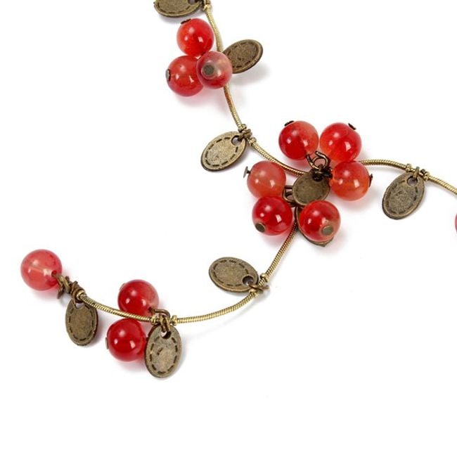 Arricchisci la tua gioielleria con questa collana, adatta per l'uso quotidiano. La collana è di colore bronzo ed è decorata con perline rosse.