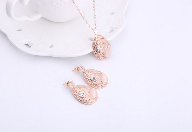 Set di gioielli da donna composto da collana e orecchini con pietra.