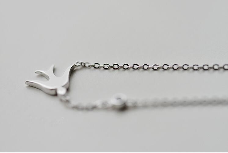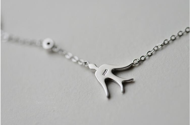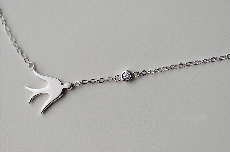 Bellissima collana femminile delicata con pendente a forma di rondine.