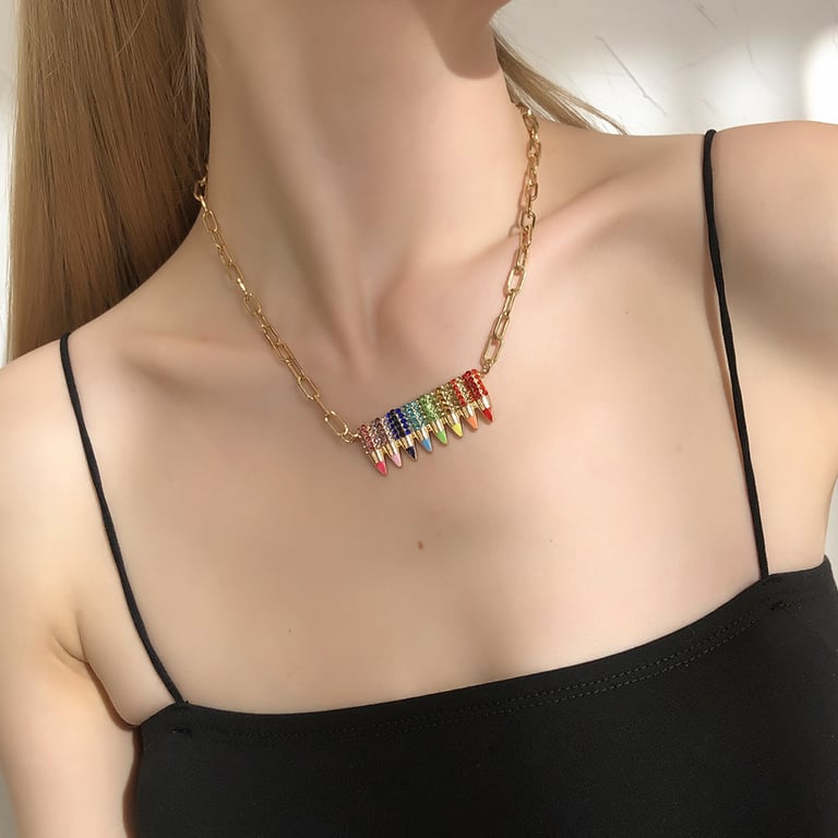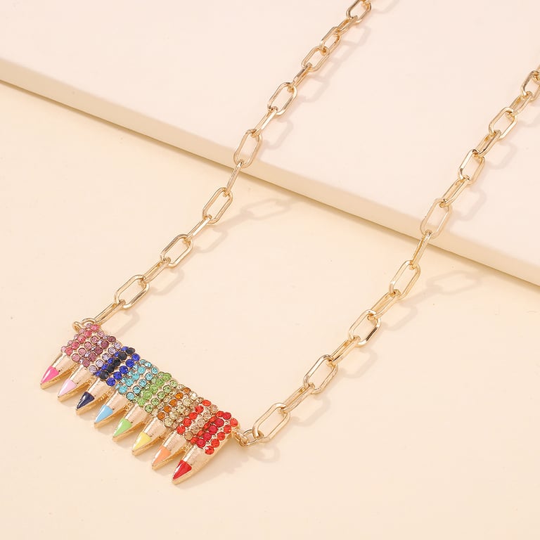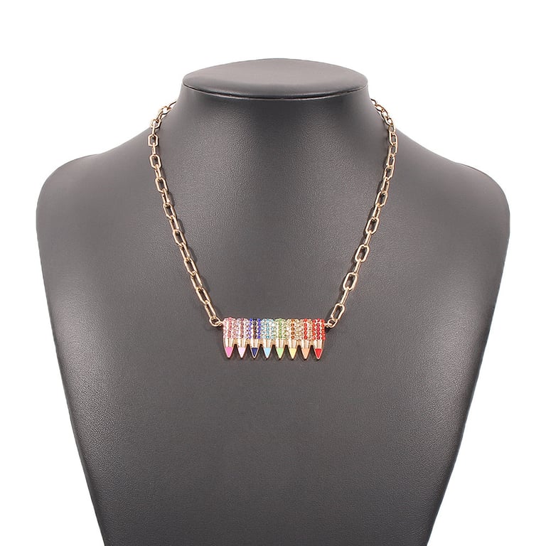 • Collana perfetta con una robusta catena e un ciondolo riccamente decorato a forma di matite in fila.