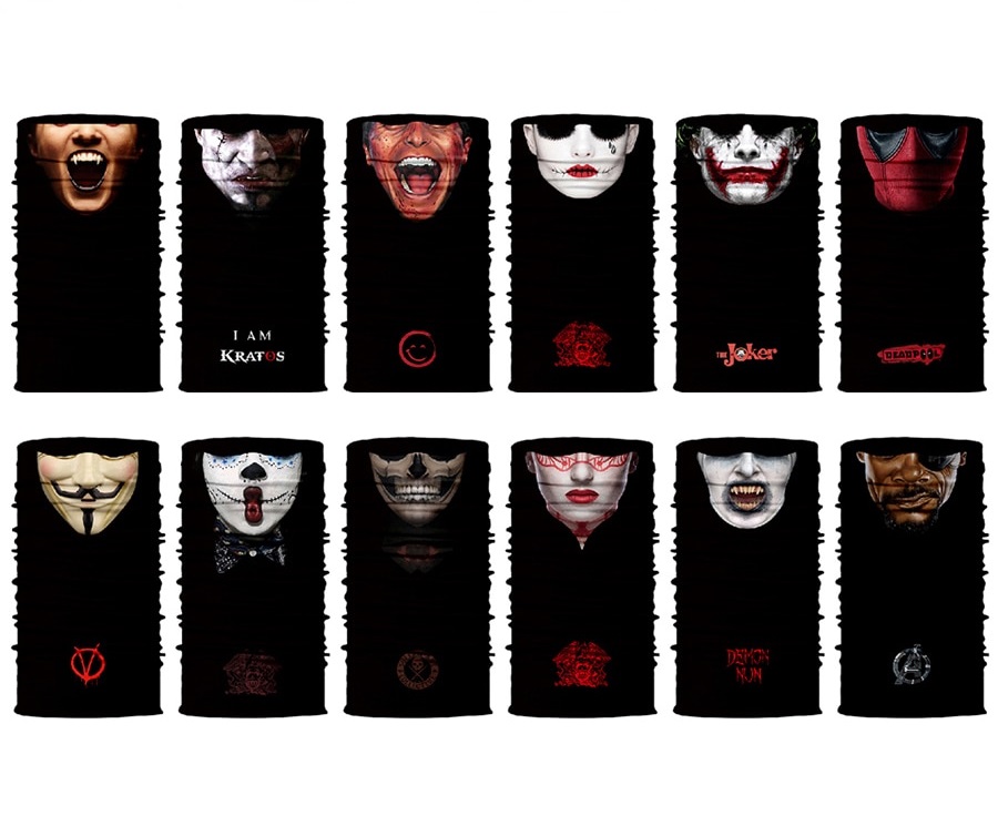 Scaldacollo di alta qualità di colore nero con stampa 3D del volto.