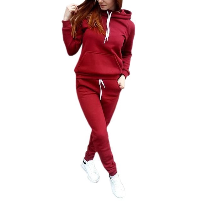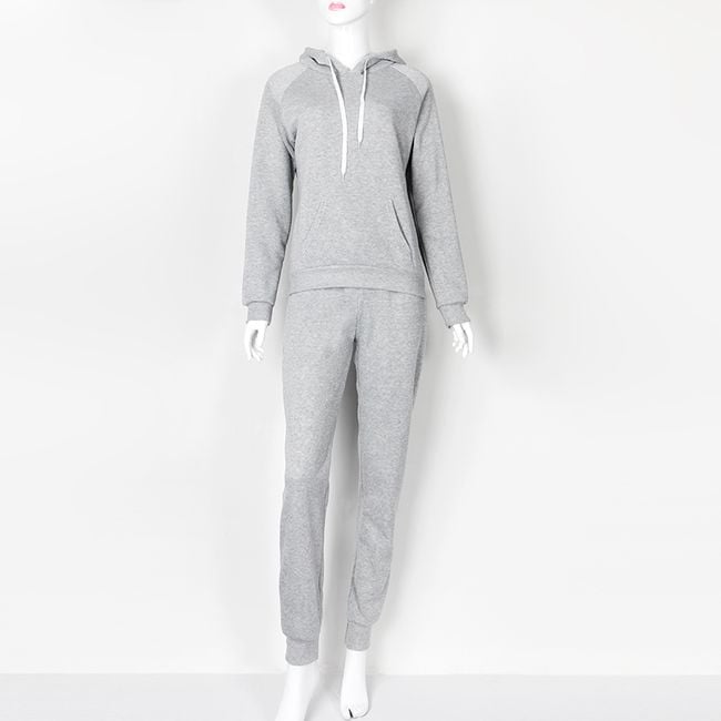 Completo da donna in felpa, che include una felpa con cappuccio e pantaloni. Nella tabella delle taglie sono indicate le misure del prodotto, non del corpo.