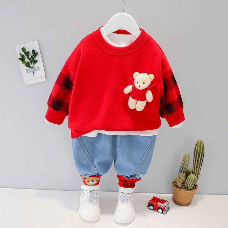 Completo per bambini con orsetto di peluche attaccato alla felpa