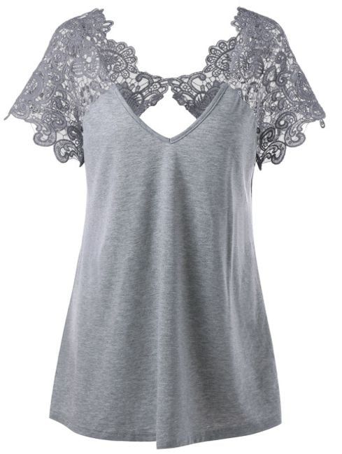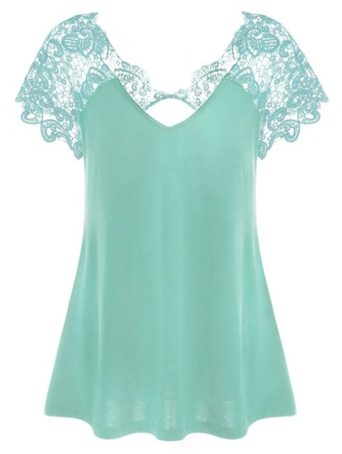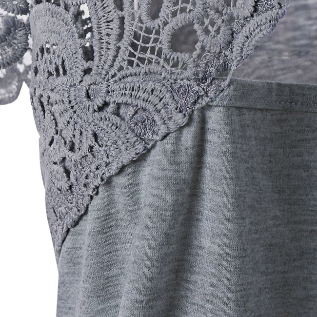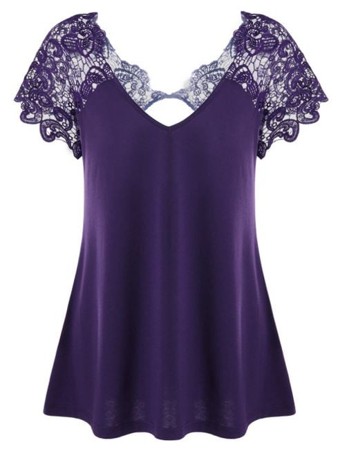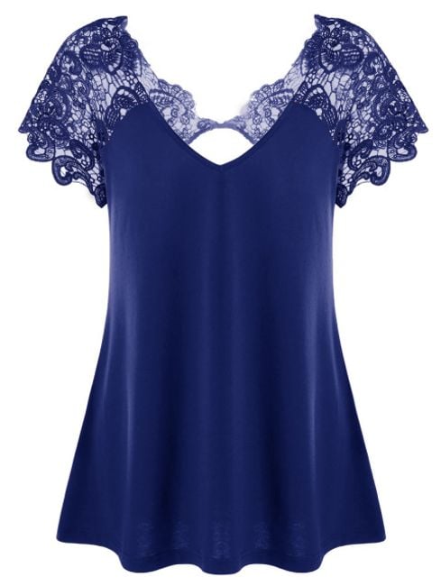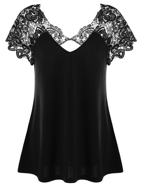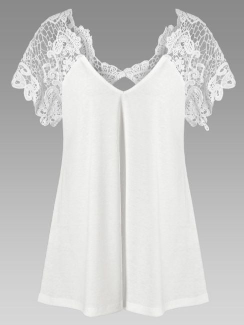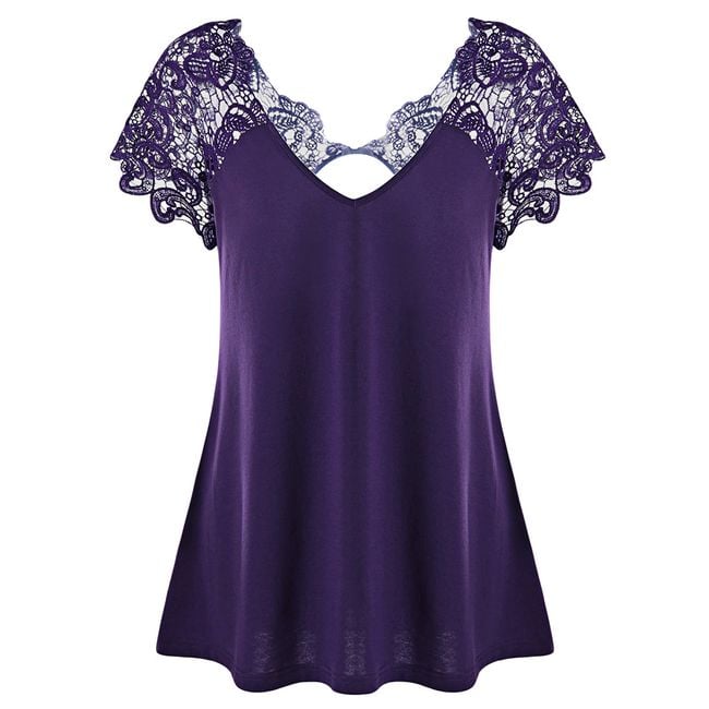 T-shirt elegante da donna, decorato con pizzo raffinato. Nella tabella delle taglie sono indicate le misure del prodotto, non del corpo.