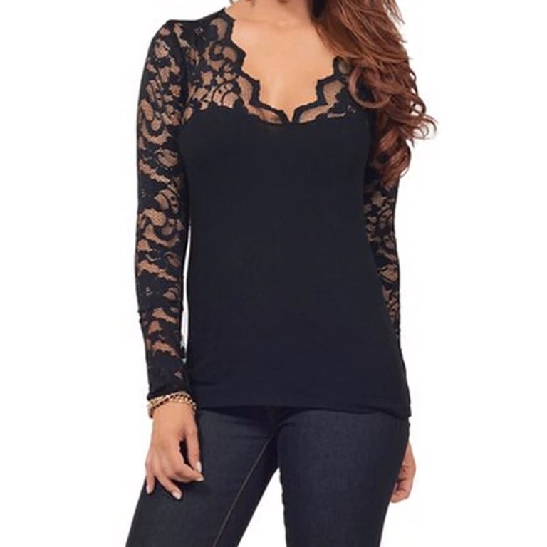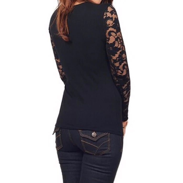 Maglietta elegante in pizzo con maniche lunghe