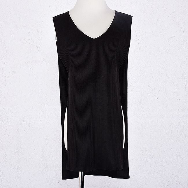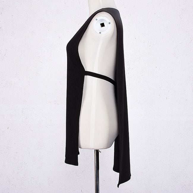 Top sexy da donna in nero con tagli raffinati sui lati.