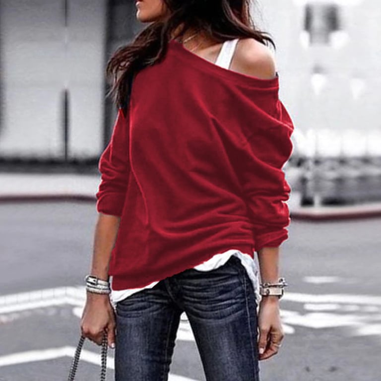 Felpa da donna, in cui apparirete stilose. È adatta per il tempo libero e ha una spalla scoperta alla moda.