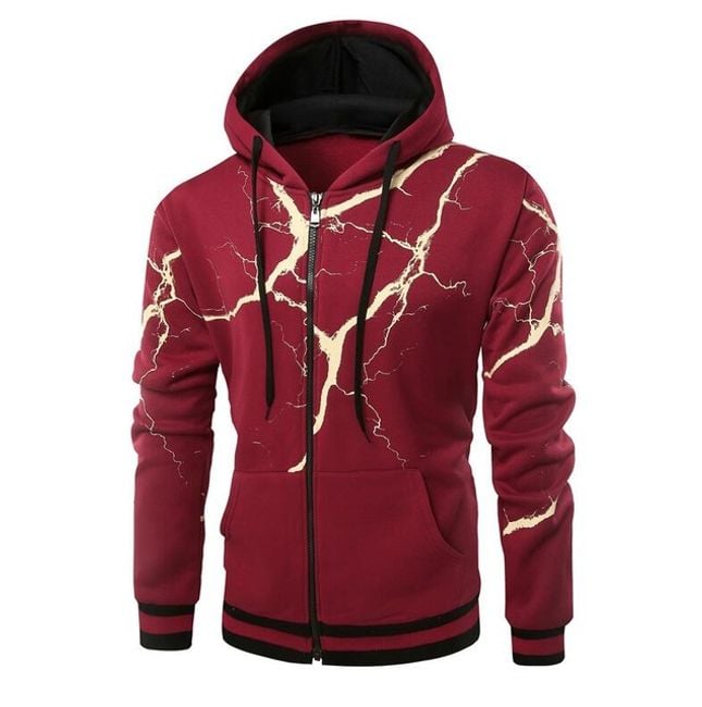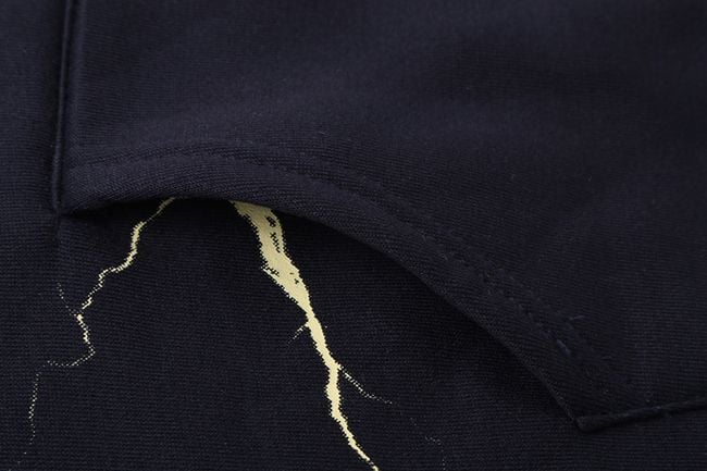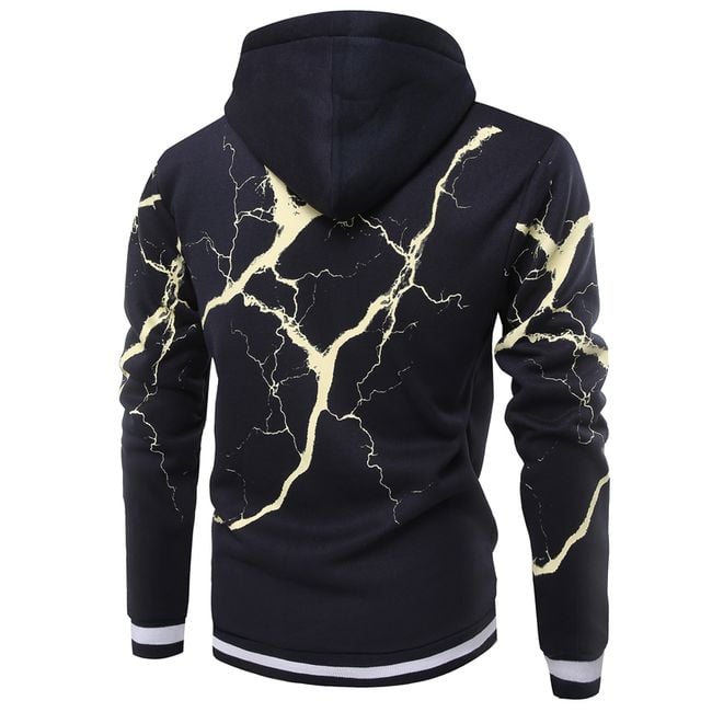 La felpa con cappuccio è stampata con fulmini. Questo motivo originale appare davvero alla moda.