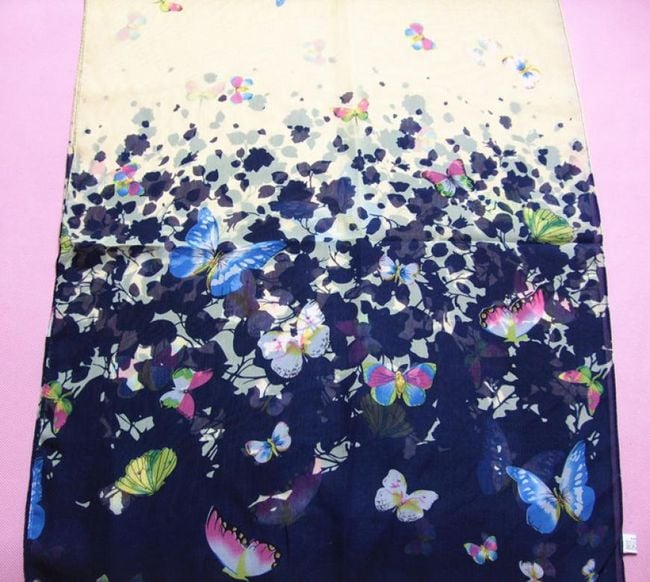 Il foulard è realizzato in un materiale piacevole e piacerà soprattutto alle amanti delle farfalle.