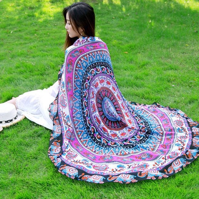 Un morbido foulard è un accessorio adatto per le donne durante la stagione estiva. Il foulard può essere utilizzato nel parco per sedersi a terra o per scaldarsi con una leggera brezza. I motivi originali saranno una piacevole decorazione. Possibilità di scelta tra 4 varianti di colore.