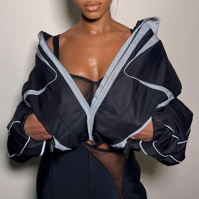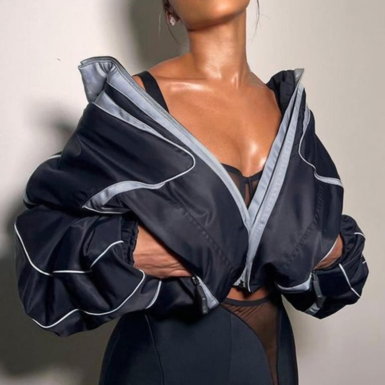 Giacca crop top elegante per donna. La giacca è adatta per il clima freddo, ha un colletto alto e comodo.