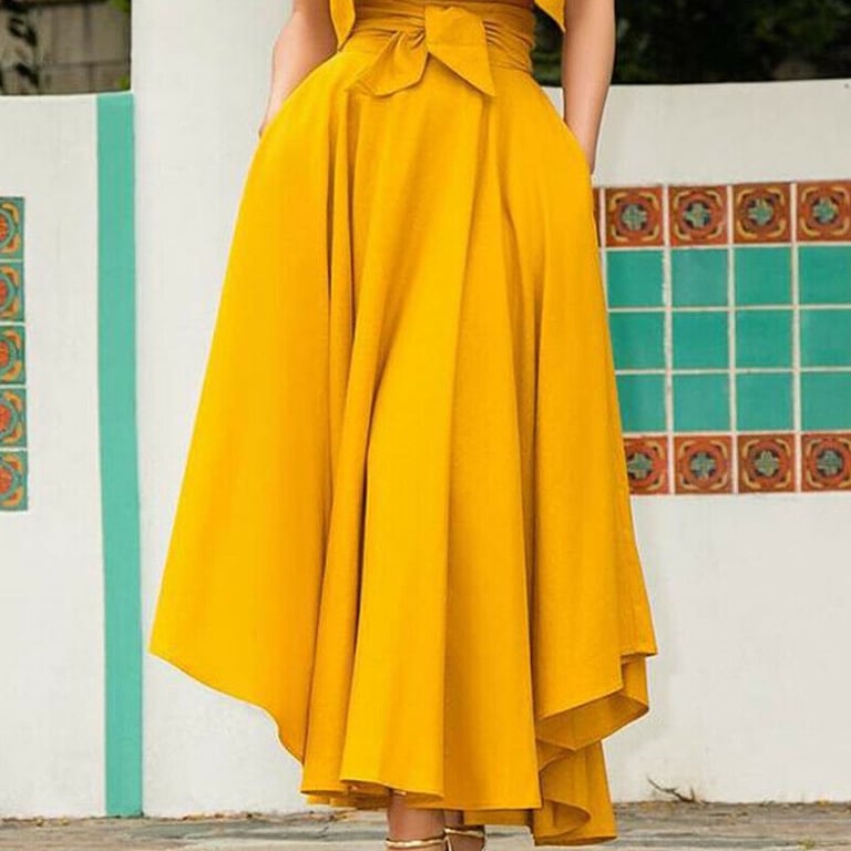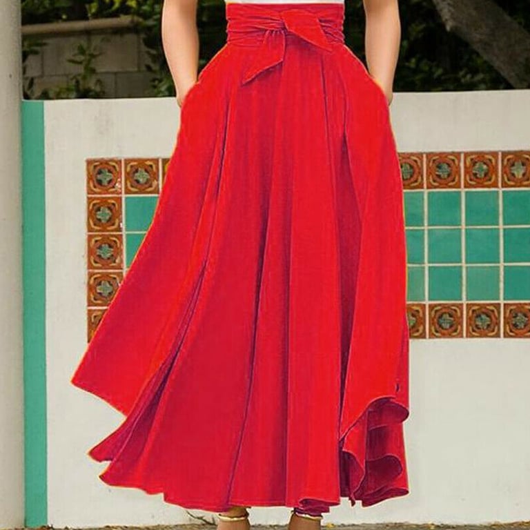 Gonna elegante autunnale da donna con fiocco in vita