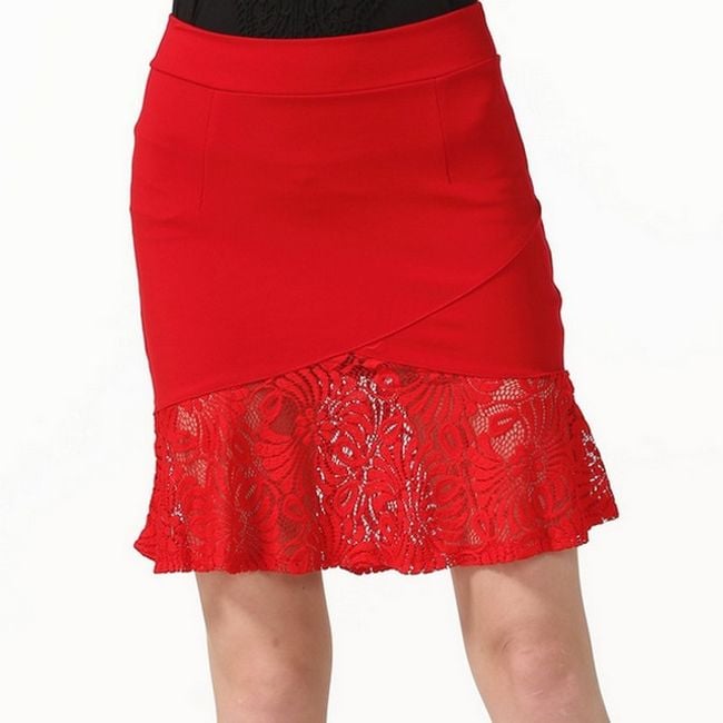 Gonna midi ampia da donna con pizzo discreto. Nella tabella delle taglie sono indicate le misure del prodotto, non del corpo.