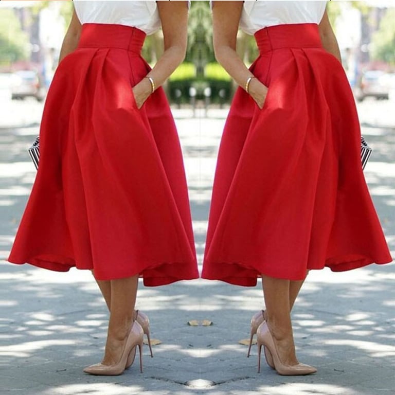 Gonna da donna in un lussuoso colore rosso. La gonna ha una ampia forma a campana. Vita alta. Materiale leggero e arioso.