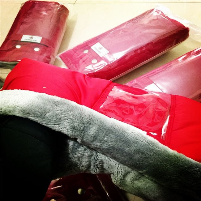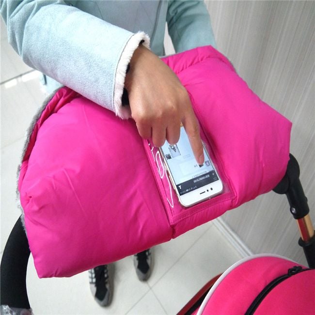 Guanti impermeabili per il manico della carrozzina con morbido pellicciotto all'interno, ideali per giorni piovosi e freddi. Puoi scegliere tra due guanti separati o un guanto più lungo con la possibilità di riporre il telefono in una tasca trasparente.