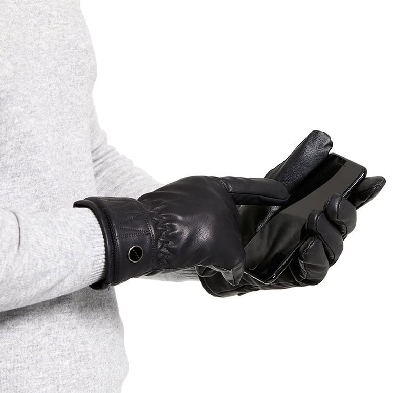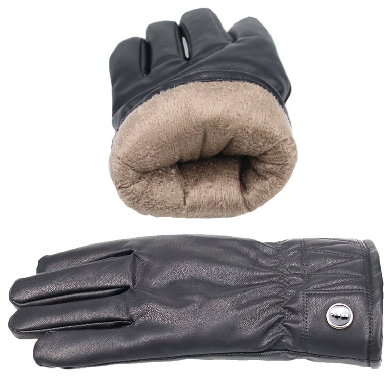 Guanti invernali da uomo dall'aspetto in pelle. Interno foderato in pelliccia