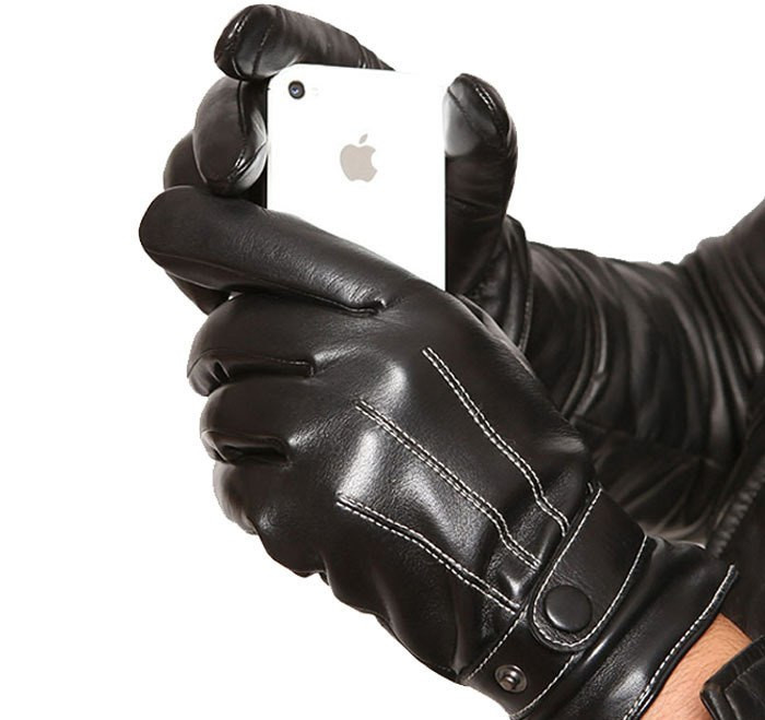 Guanti invernali eleganti da uomo con aspetto in pelle. Internamente foderati in pelliccia.