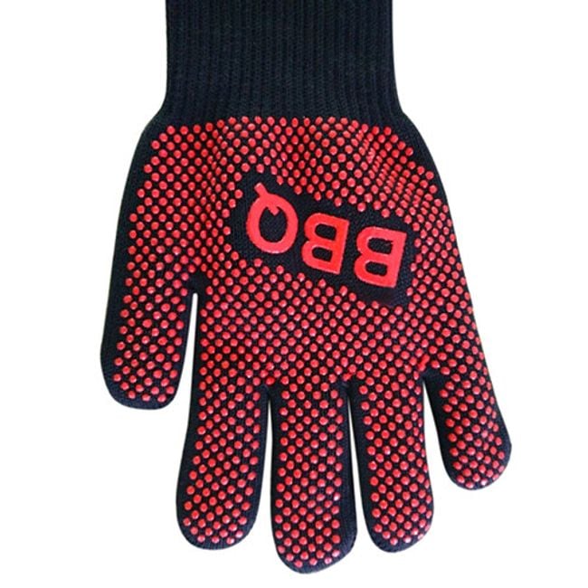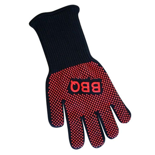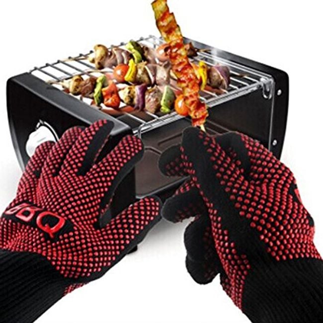 Guanto da cucina con superficie in silicone, utile ad esempio per grigliare o cuocere al forno.