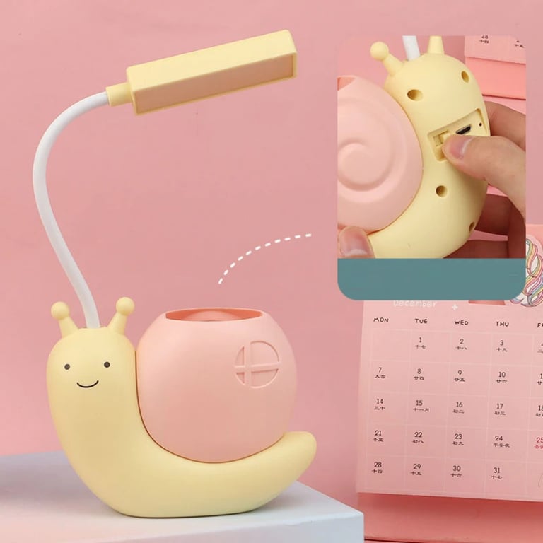 Lampada da tavolo per bambini a forma di lumaca con pratico spazio di archiviazione