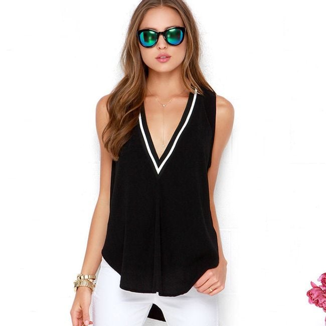 Top estivo libero ed elegante, perfetto per le calde giornate estive. Grazie al suo scollo interessante che mette in risalto tutto il top, sarà ideale per quei giorni in cui desideri un bel outfit, ma non vuoi passare un'ora davanti all'armadio a pensare. La parte posteriore è allungata, quindi nasconde splendidamente il fondoschiena. Puoi scegliere tra 4 colori e quattro taglie.