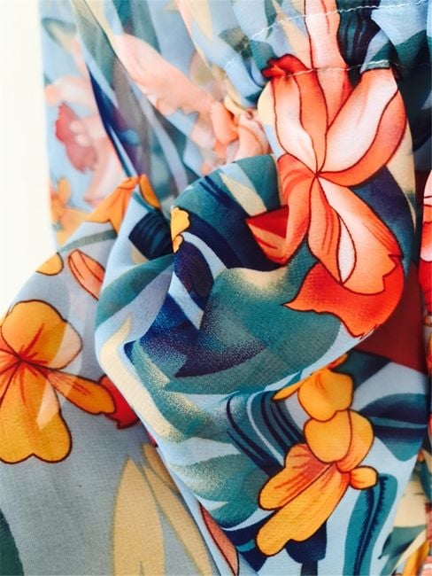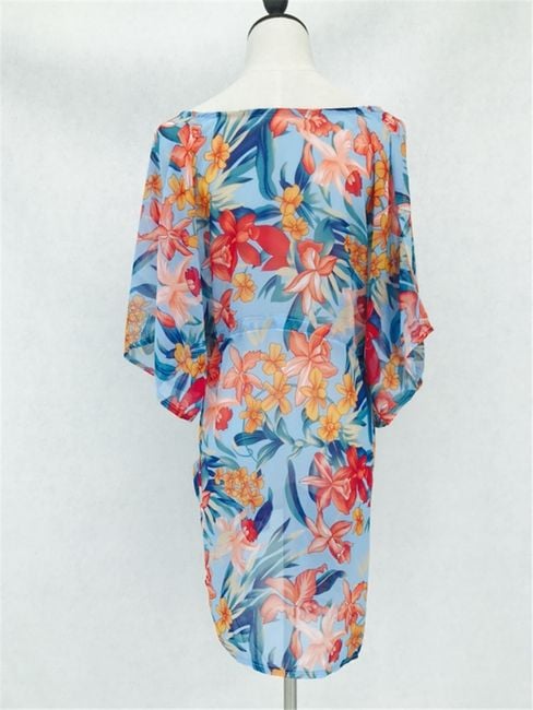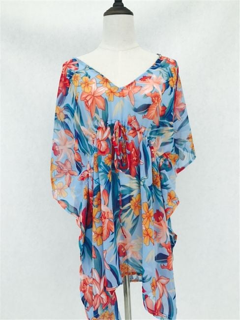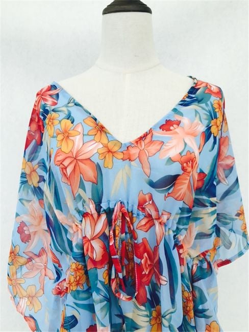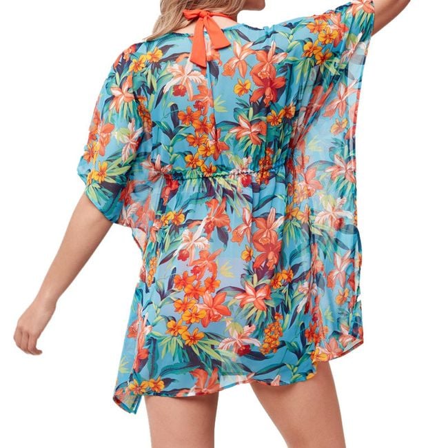 Il vestito è realizzato in un materiale molto leggero e fluido ed è adatto come accessorio da indossare durante il clima caldo.