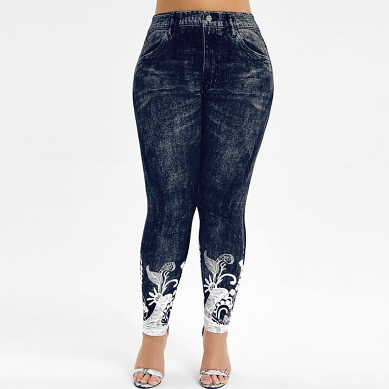 • Lunghezza della gamba fino alla caviglia, con stampa in decorazione pizzo, stampa di false tasche laterali e posteriori e bottone, comoda vita alta elastica.