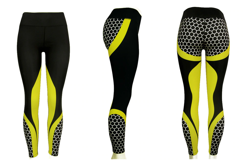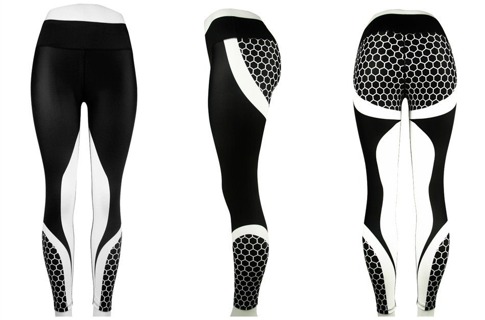 Bellissimi leggings eleganti adatti per praticare yoga, ma non solo per questo. Sono adatti per varie attività sportive. I leggings hanno strisce bianche lungo tutta la loro lunghezza, che sembrano delle aperture.
