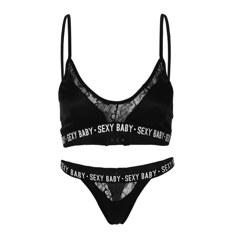 Intimo femminile decorato con pizzo. Ha un elastico più largo con scritte.