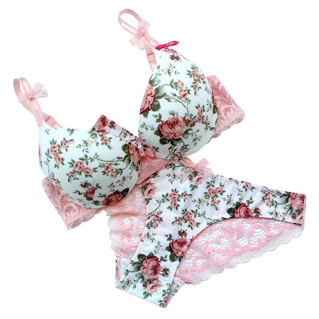 Il completo di lingerie in una delicata realizzazione trasmette un'impressione di dolcezza e romanticismo. La parte posteriore delle mutandine e del reggiseno è realizzata in un seducente pizzo di tonalità rosa. Nella selezione puoi scegliere tra quattro taglie di reggiseni, a cui corrisponde una taglia fissa di mutandine (vedi ulteriori dettagli di seguito).