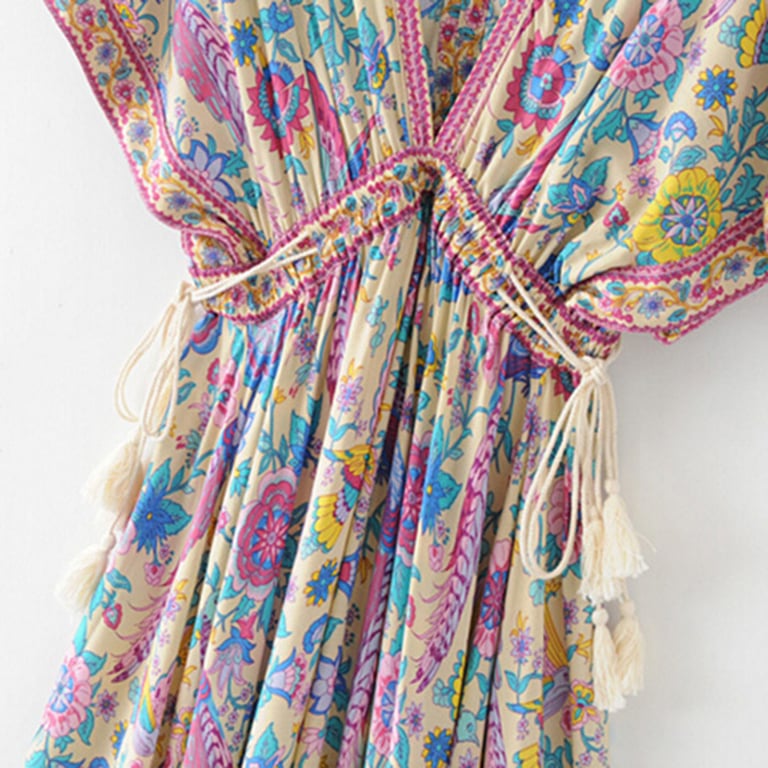 Abiti estivi lunghi da donna. Taglio impero e scollatura a V.