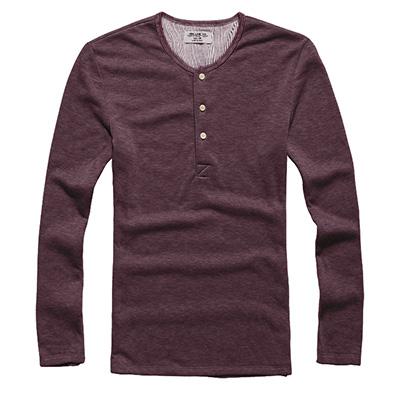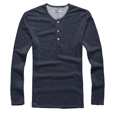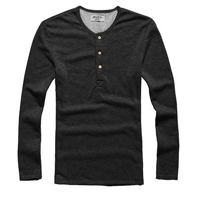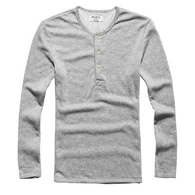 T-shirt da uomo a maniche lunghe con bottoni al collo. Il materiale è una miscela di cotone e spandex, che garantisce elasticità e resistenza alle pieghe.