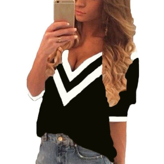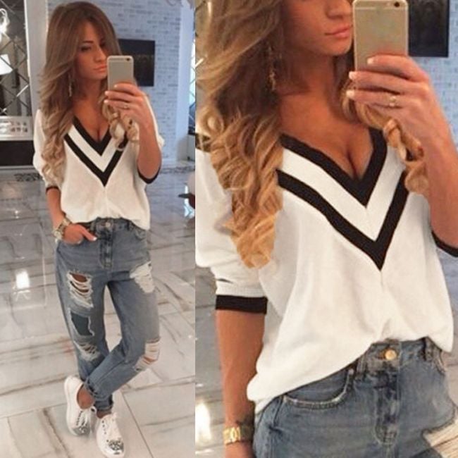 La maglietta ha maniche a tre quarti ed è più adatta ai jeans-