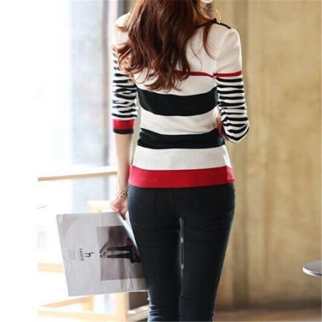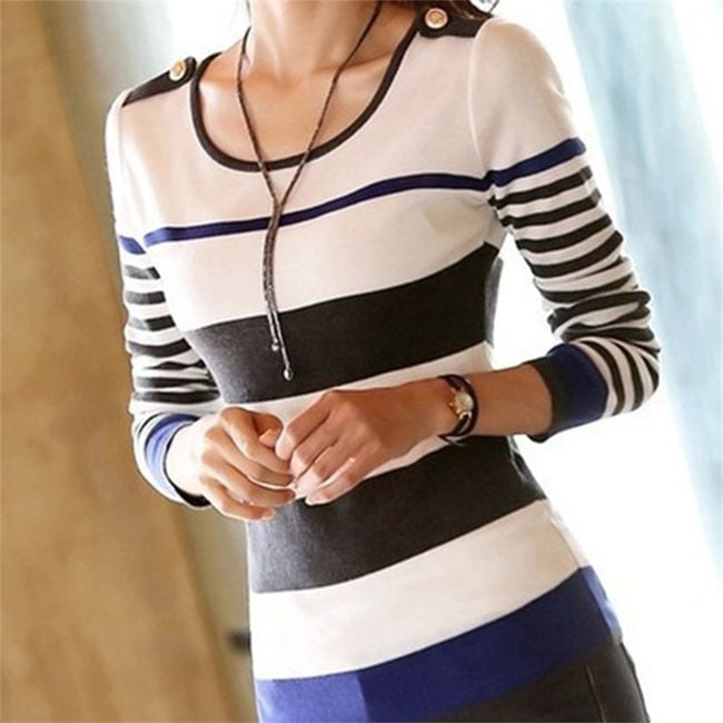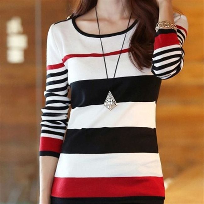 Maglietta da donna a righe con maniche lunghe