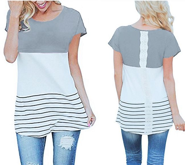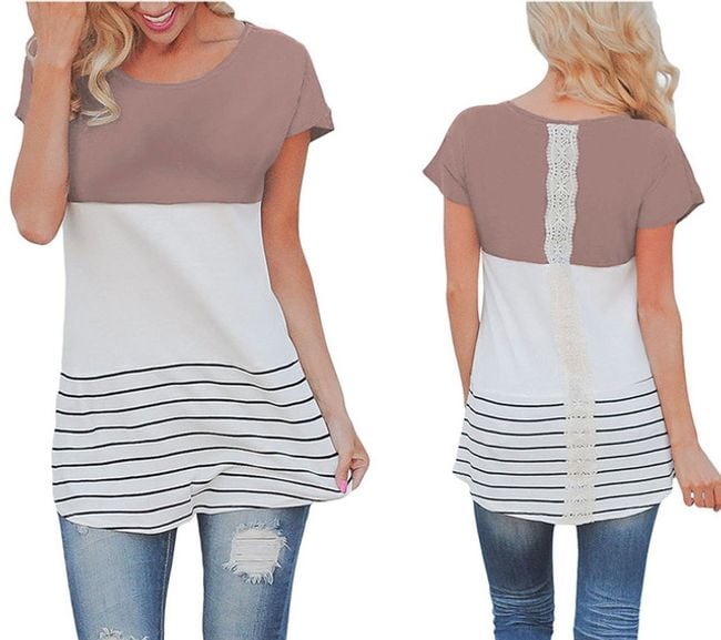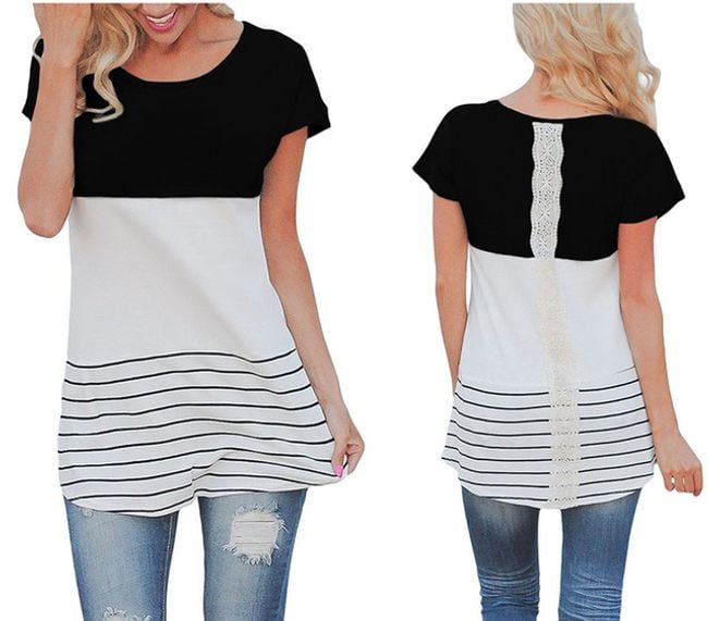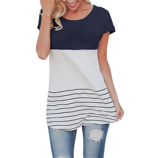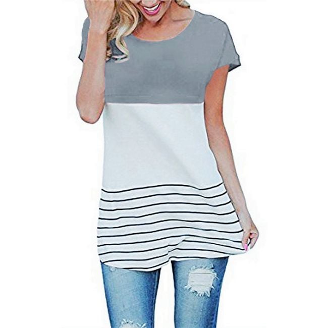 La maglietta lunga a maniche corte ha una interessante sfumatura di colore arricchita da sottili righe. È disponibile in 4 varianti di colore.