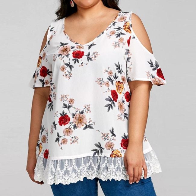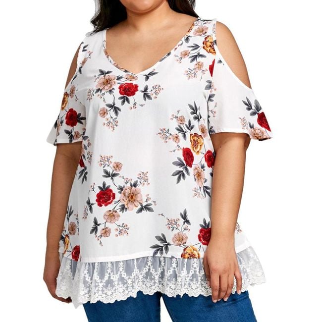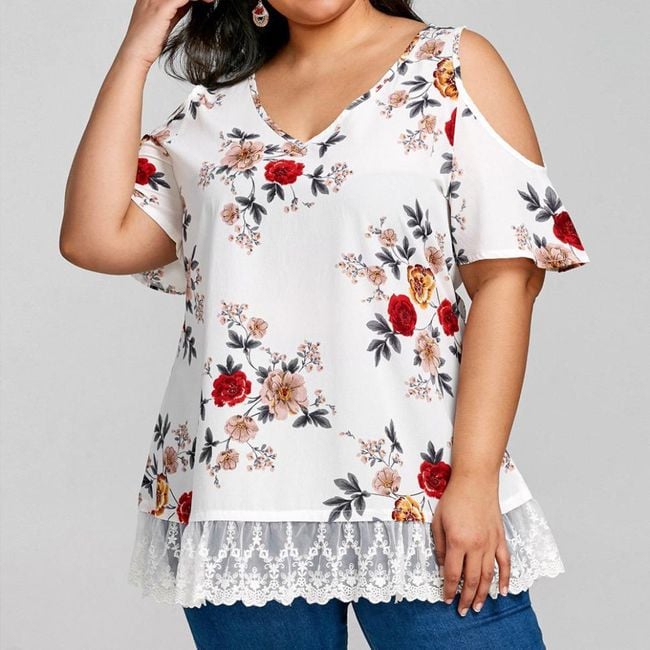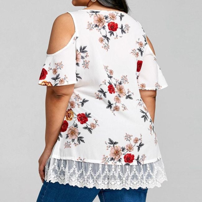 La maglietta ha un'applicazione in pizzo foderata e ha delle aperture sulle spalle.