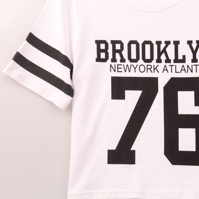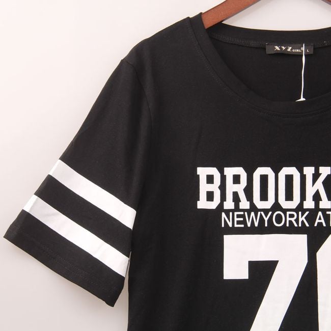 T-shirt moda o tempo libero da donna Brooklyn. Materiale piacevole e taglio ampio. Disponibile in nero e bianco. La tabella delle taglie è indicata nella descrizione del prodotto.