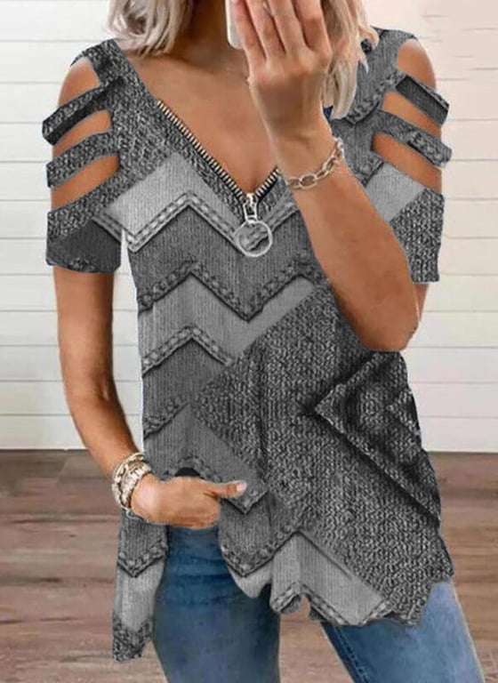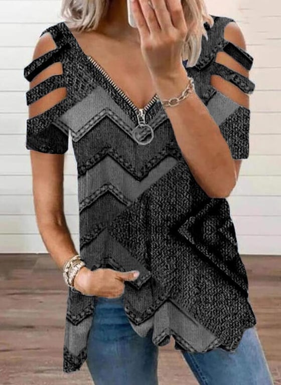 T-shirt da donna con aperture sulle spalle e zip sul décolleté – Claudie