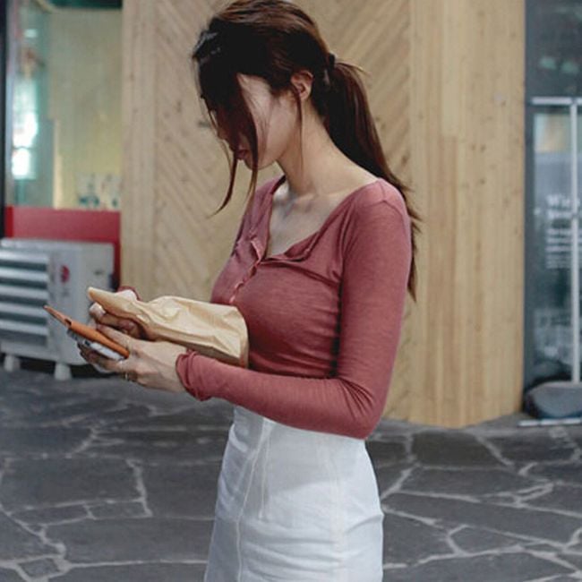 Maglietta da donna con bottoni e maniche lunghe - 5 colori