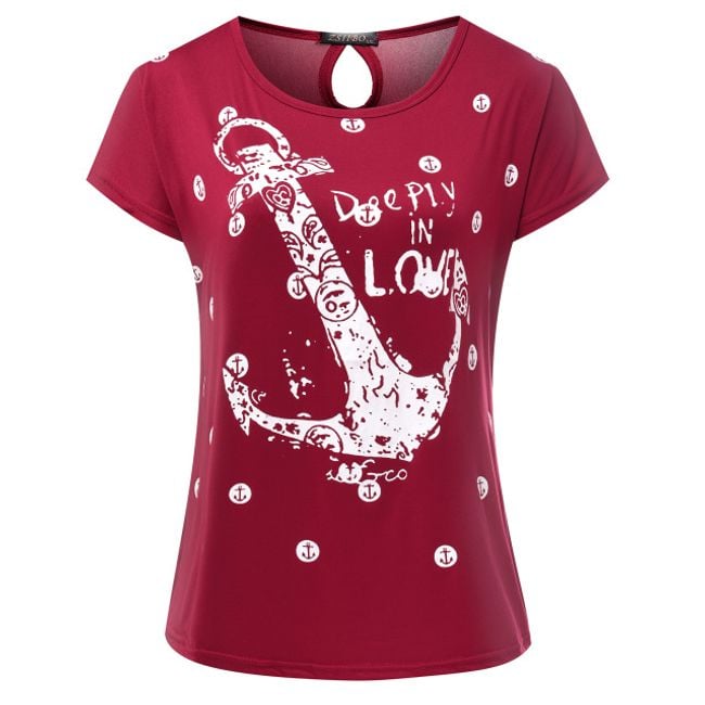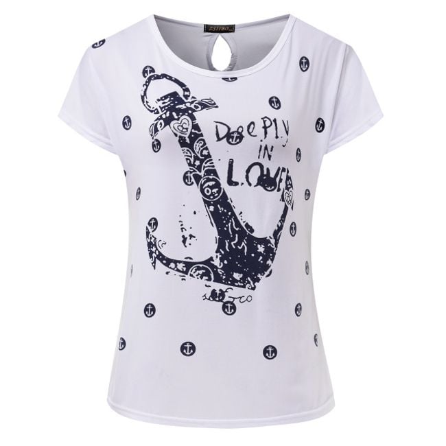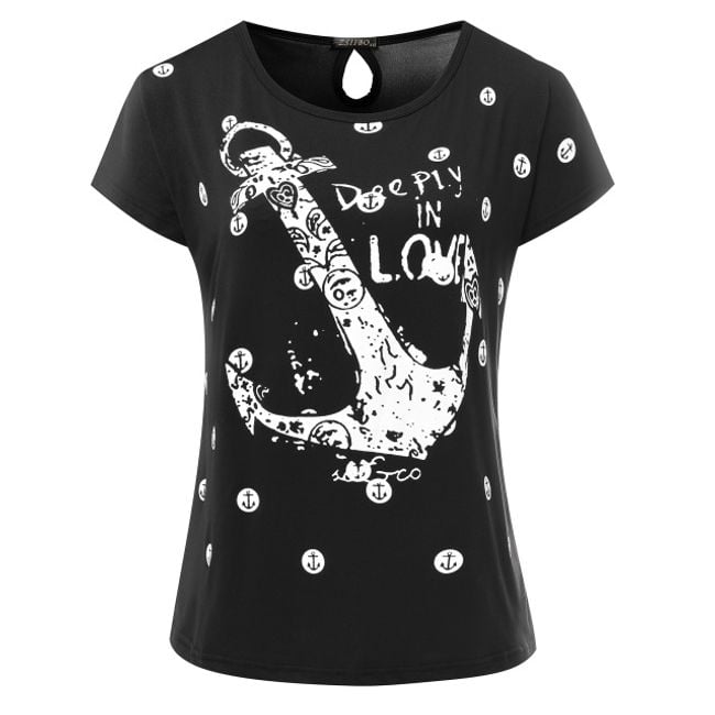 La maglietta a maniche corte ha un piccolo foro a forma di goccia sul retro.