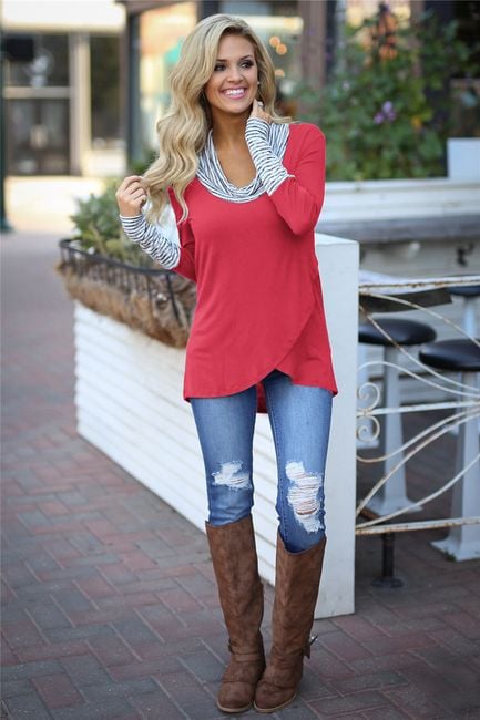 La maglietta è più lunga sul retro e si abbina meglio ai jeans.