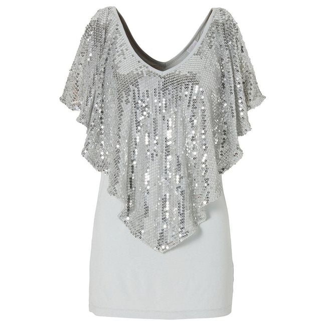 La maglietta è adatta ad esempio per una festa. È decorata con volant di paillettes ed è facilmente abbinabile.