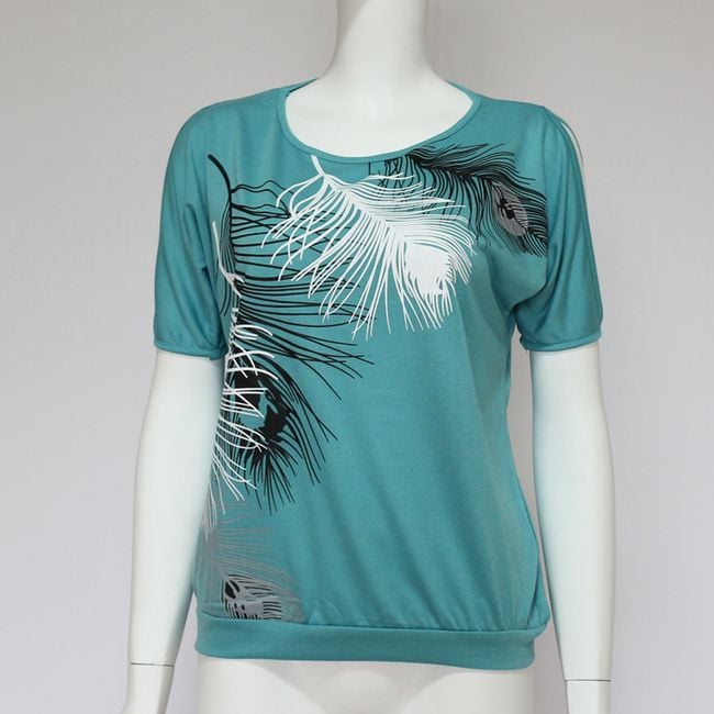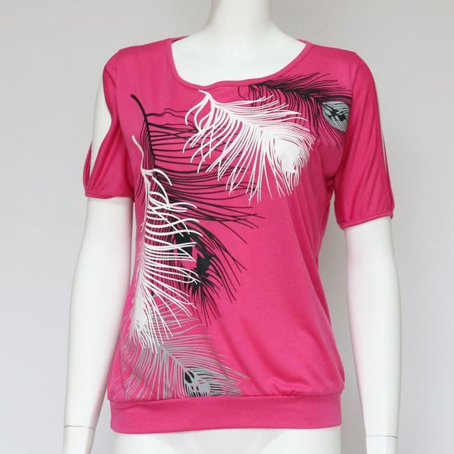 Questa comoda maglietta con piume e spalle scoperte sarà un'aggiunta al tuo guardaroba.