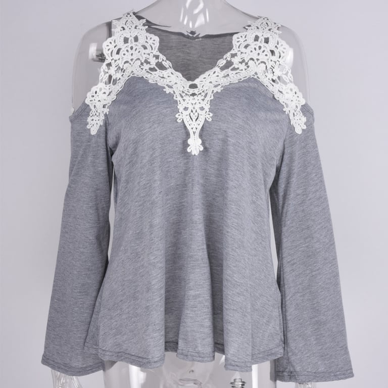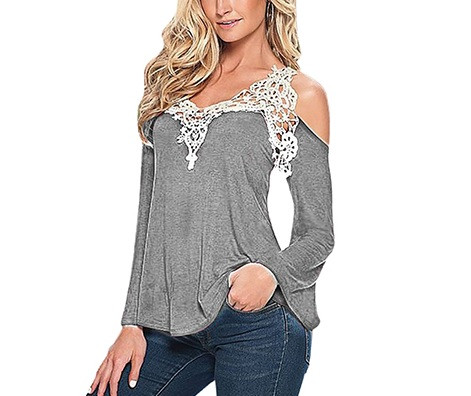 Maglietta da donna con pizzo e maniche lunghe - grigia