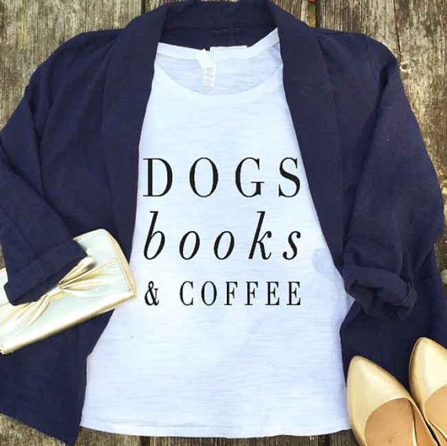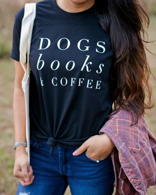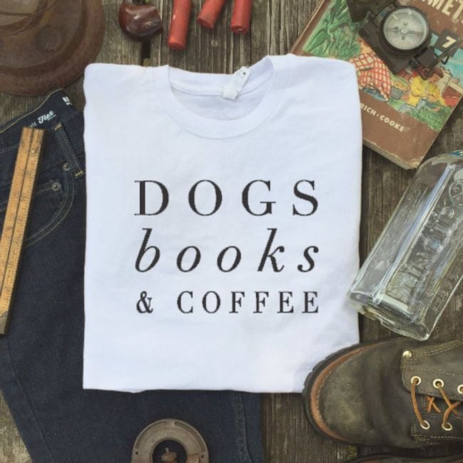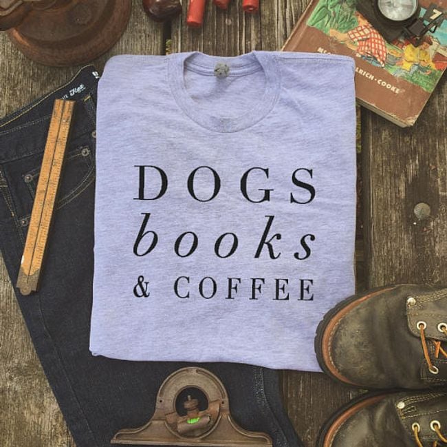 La maglietta è un ottimo regalo per tutti gli amanti dei cani, della lettura e del caffè.