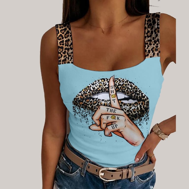 • T-shirt da donna semplice con spalline leopardate e stampa di una mano e di una bocca è un capo di abbigliamento stiloso che devi assolutamente avere.