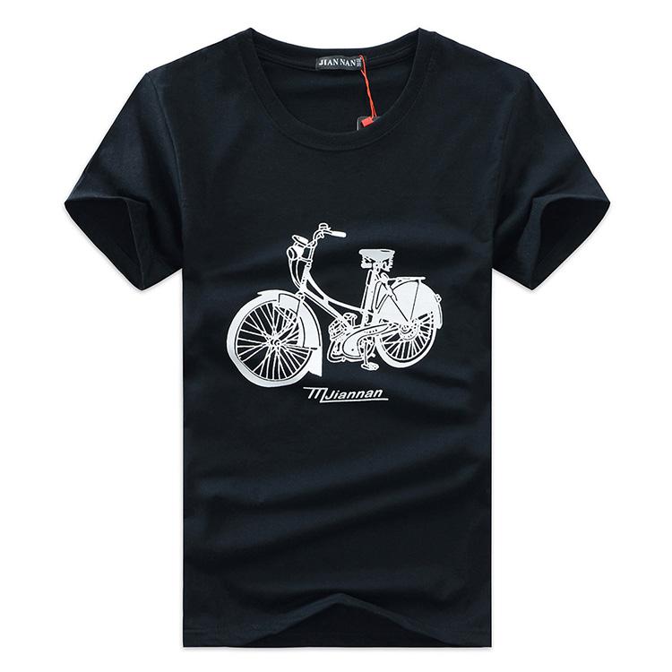T-shirt stilosa da uomo, adatta per l'uso quotidiano. Disponibile in diverse colorazioni e decorata con una stampa di una bicicletta. La maglietta ha maniche corte e scollatura ovale.