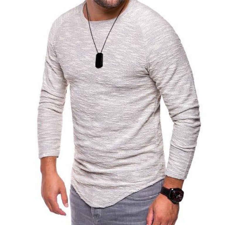 T-shirt casual da uomo a maniche lunghe in tinta unita
