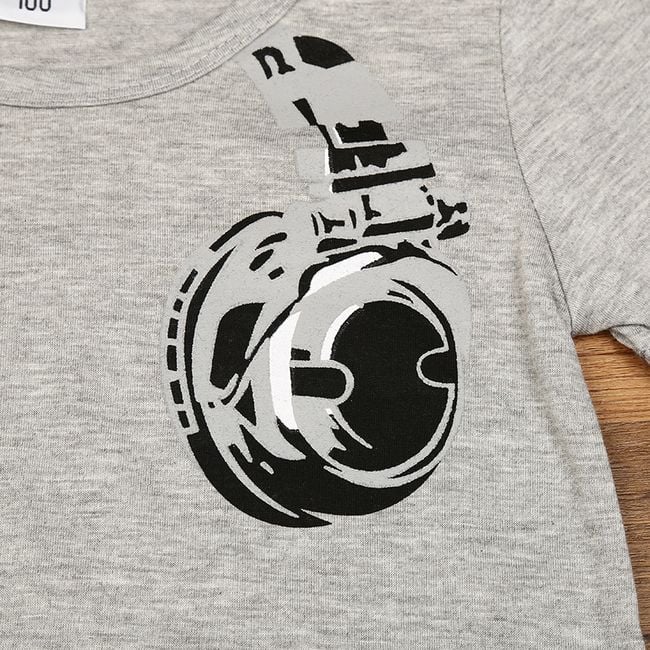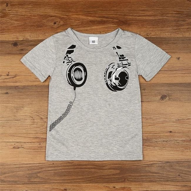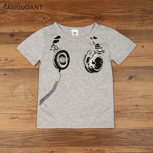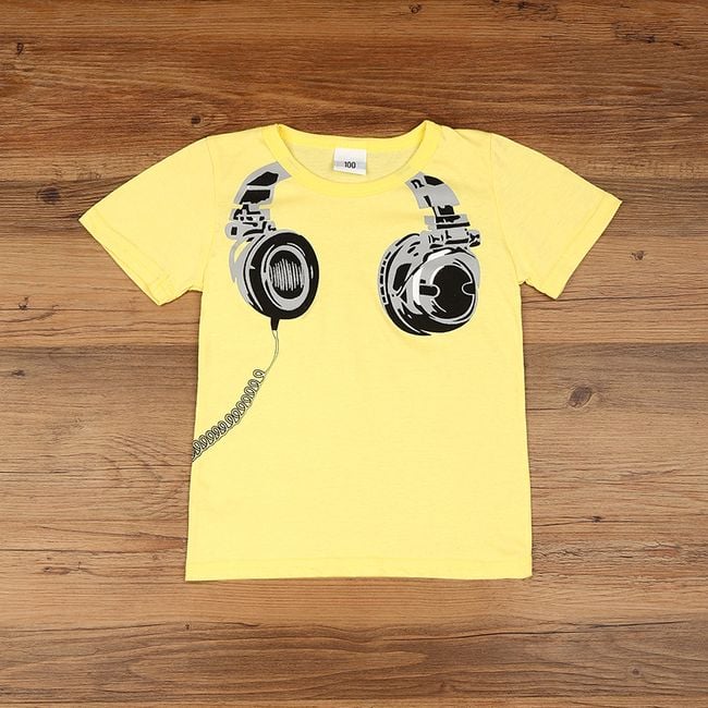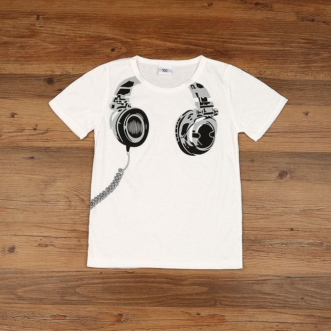 La maglietta ha una stampa di cuffie nella parte anteriore.